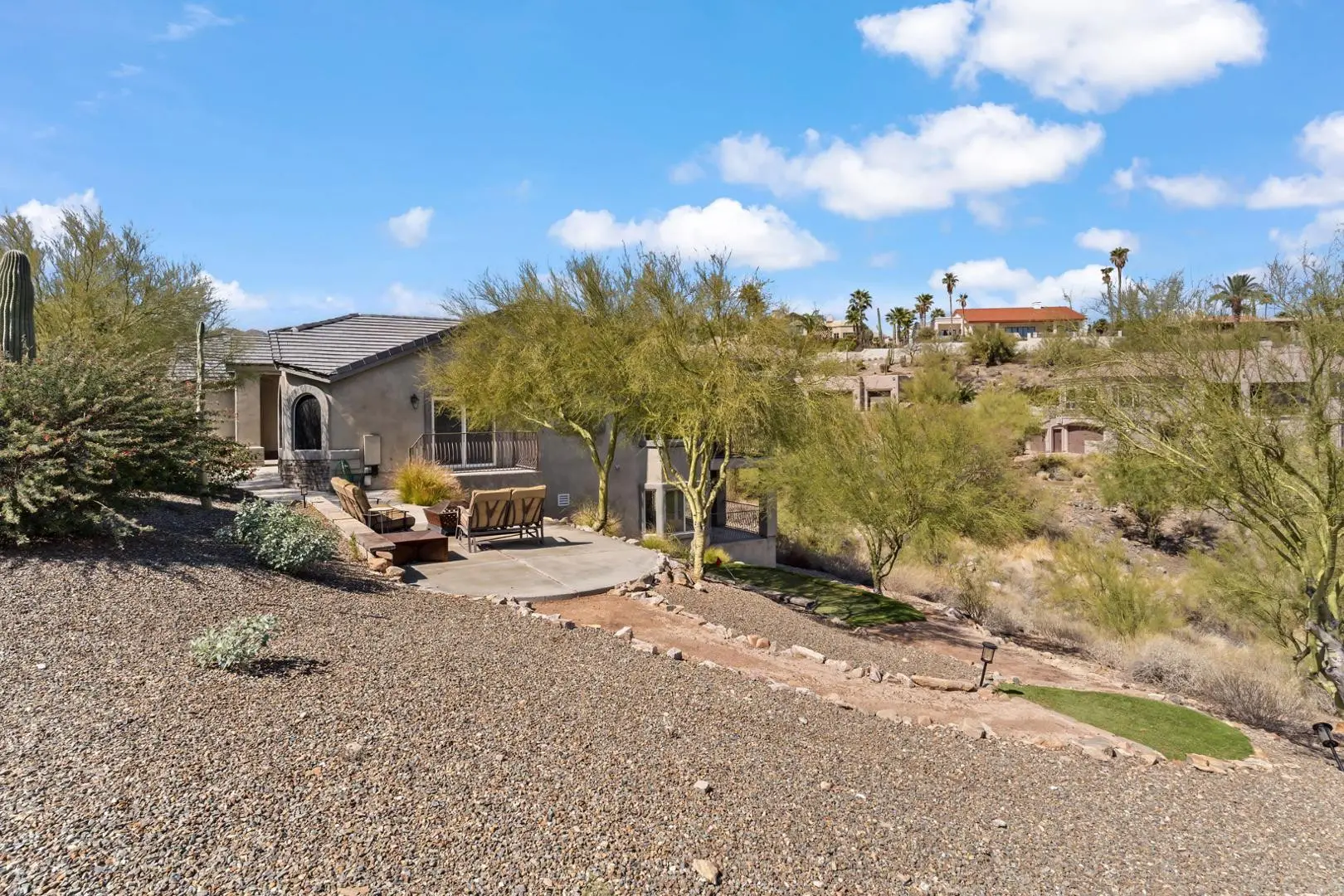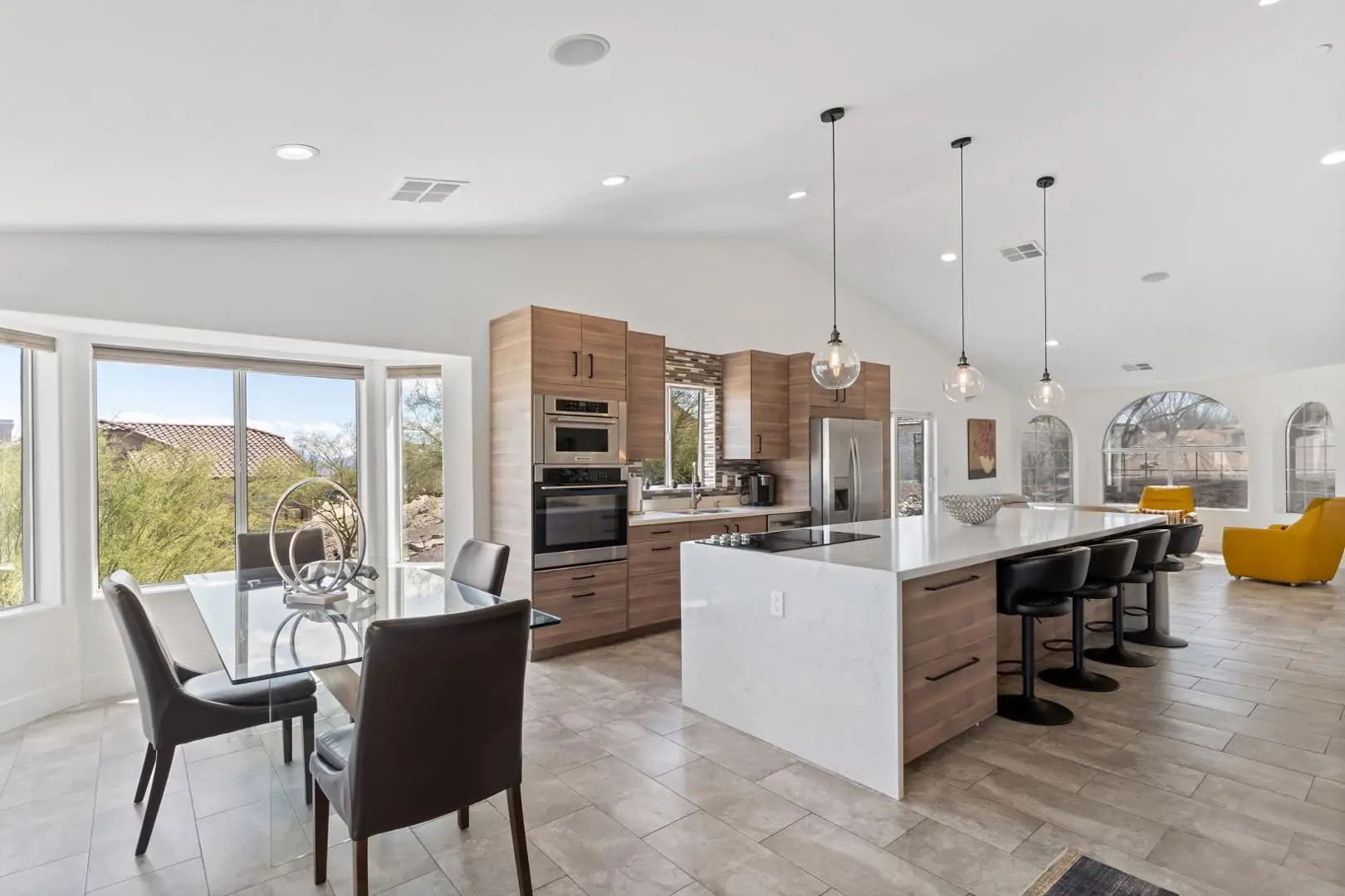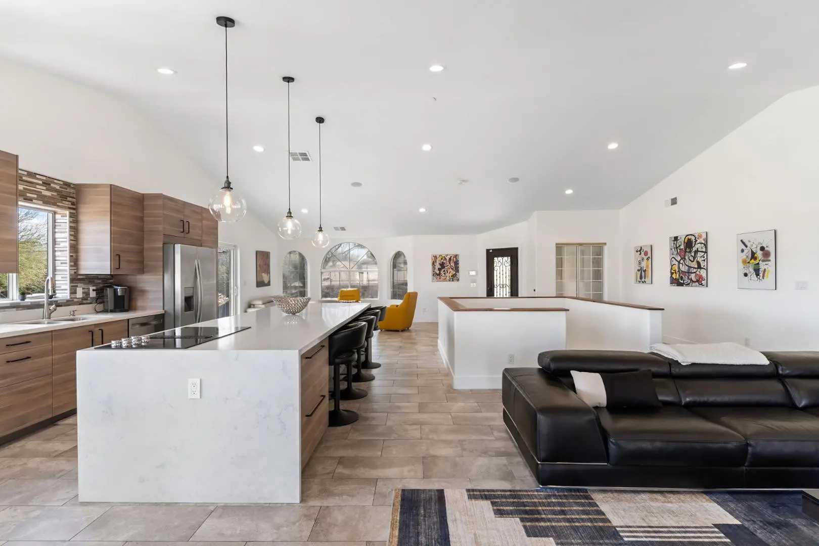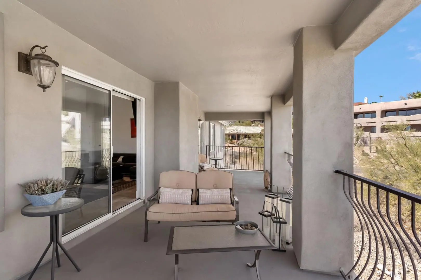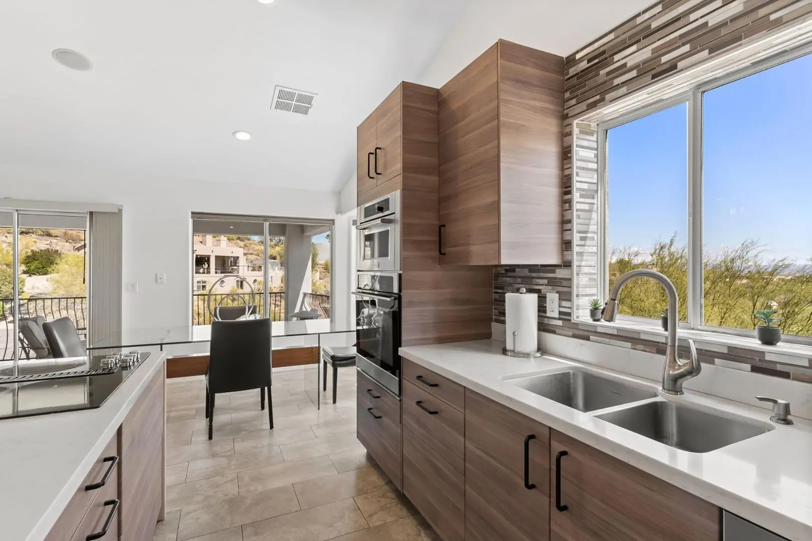Experience luxury living in this stunning home with breathtaking canyon, mountain and city light views. This contemporary 3-bedroom, 3-bath residence offers an elegant yet comfortable retreat with impeccable design and modern amenities. Step into the main level featuring an expansive great room with a cozy fireplace, perfect for relaxing while enjoying the scenic surroundings. The large, full-length patios on both living levels provide the ultimate indoor-outdoor experience, making them ideal for entertaining. The primary bedroom, complete with a steam shower and an additional bedroom are conveniently located on this floor. The heart of the home is the kitchen, showcasing a waterfall quartz countertop, designer cabinetry and top-tier appliances, creating a seamless blend of style and