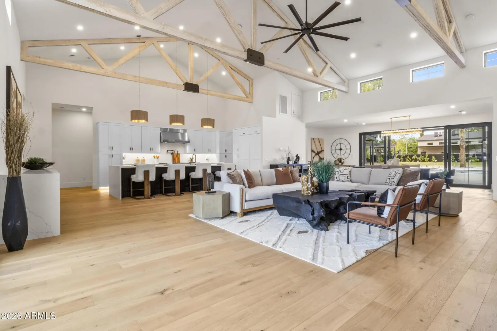 MODERN DESERT MASTERPIECE! Introducing the latest Modern Farmhouse from MAK Homes on nearly 1 Acre in 85254. A welcoming front porch & prominent entry leads to a precisely designed, all-on one-level floor plan with the Kitchen/Great room with clerestory windows & a massive fireplace as its centerpiece. Hardwood floors, and the highest quality windows/doors throughout. The resort-style backyard features a custom Pool/Spa, Ramada, HUGE grassy area, & a stunning Casita, complete with Living, Kitchenette, en suite Bed, & dedicated Pool Bath. Rear yard gate for easy access for future add-ons, flood irrigation + sprinklers. 2 A/C Garages: generous 2-Car and a 1-Car with 15' ceiling for lifts. Horse privileges and plenty of room for stables or an additional garage.