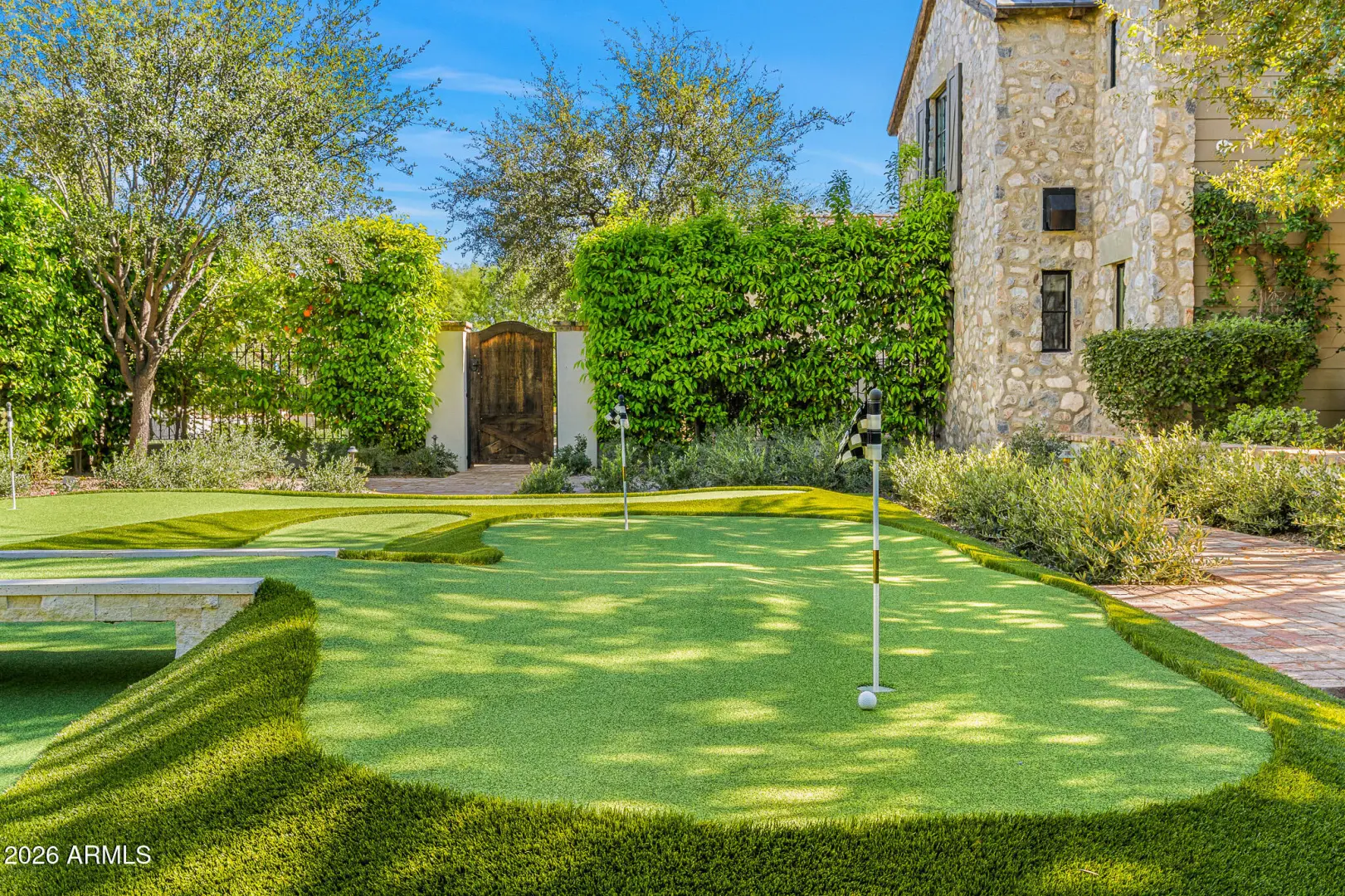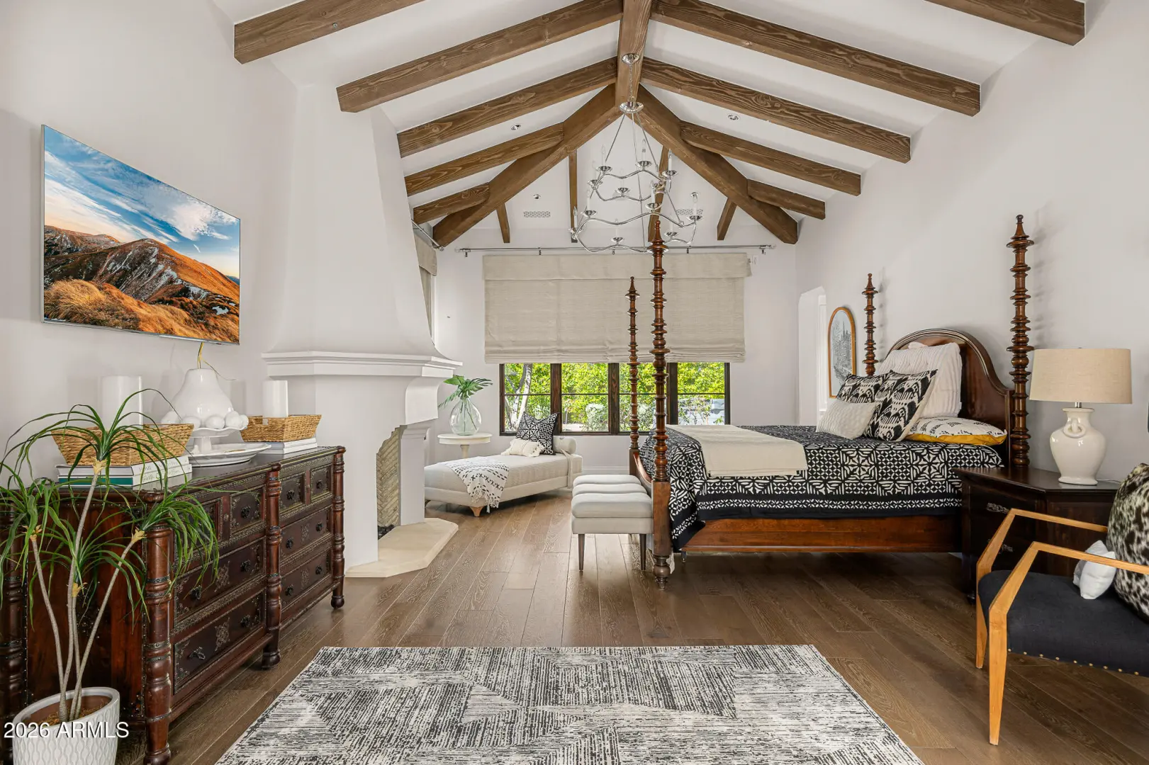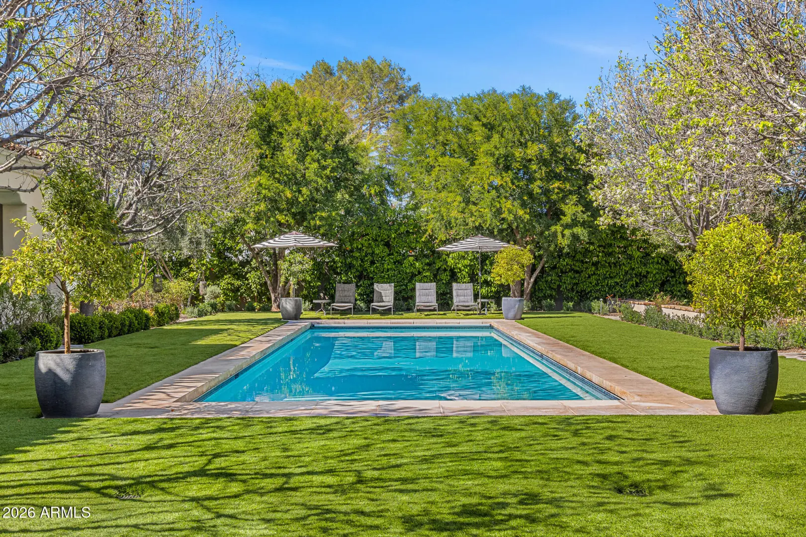 Privately gated and set on 1.1 acres of lush, mature landscaping, this timeless Santa Barbara estate offers unobstructed mountain views in the heart of Paradise Valley's coveted Equestrian Trails. Designed by renowned architect Matthew Thomas, built by Mike Foster Custom Homes, with landscape design by Berghoff Design Group and curated lighting by Walter Spitz, this 9,347 square foot residence is a true collaboration of craftsmanship and design excellence. A grand entry reveals perfectly framed views of the saltwater pool and manicured grounds, setting the tone for the home's effortless elegance. Soaring ceilings, handcrafted architectural details, and expansive living spaces create a refined yet inviting atmosphere. The thoughtfully designed floor plan includes five spacious ensuite ....